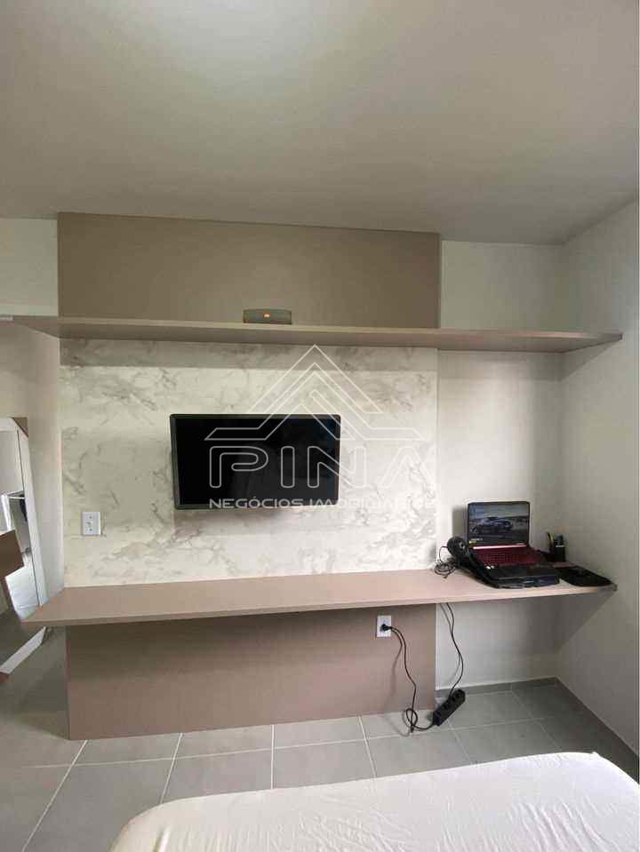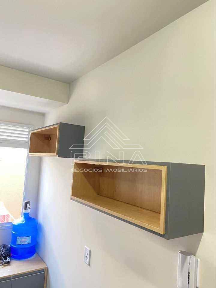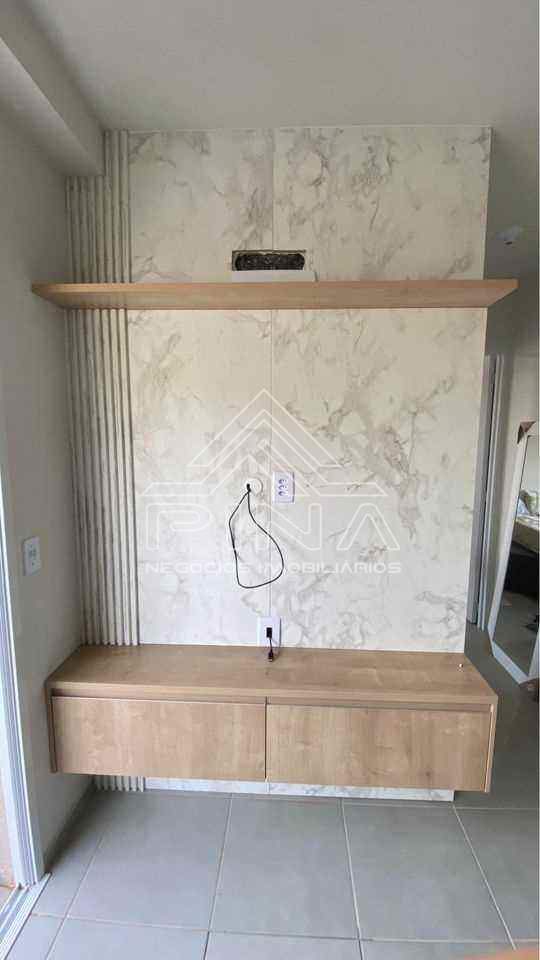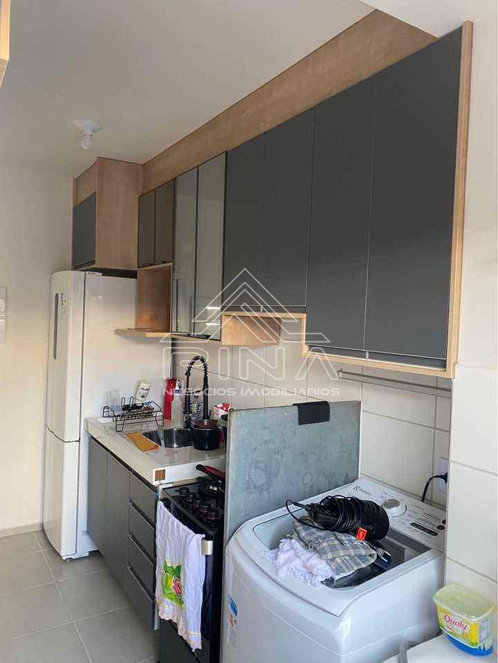 - 01 Dormitório com armários planejados- Sala com painél- Cozinha planejada- Banheiro - Área de serviço- Quintal- Garagem- Academia- Salão de festas- Brinquedoteca Obs: Apartamento inteiro com móveis planejados